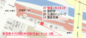 JR御茶ノ水駅聖橋口から徒歩わずか1分という抜群の立地は、生徒さんの継続率に直結します。